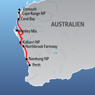 Im Rahmen von Westaustralien Rundreisen haben Sie die Möglichkeit, den Westen dieses einzigartigen Kontinents und seine Landschaften sowie die Flora und Fauna besser kennenzulernen. Entdecken Sie die wunderbare Küstenlandschaft, uralte Karri-Wälder mit zahlreichen Baumriesen in der Region rund um Pemberton und statten Sie der fabelhaften Schluchtenlandschaft des Kalbarri National Park einen Besuch ab. Auf einer Westaustralien Rundreise staunen Besucher regelmässig über das Nationaltier Australiens, das Känguru. Auf einer Bootsfahrt durch die Geikie-Schlucht können Sie jedoch auch riesige Süsswasserkrokodile beobachten. Doch auch in kultureller Hinsicht ist Westaustralien das perfekte Ziel für Rundreisen. In Geraldton staunen Touristen regelmässig über die Kathedrale der Stadt und in New Norcia kann die einzige Benediktiner-Mission dieses Teils des Landes besucht werden. Lassen Sie sich von uns Australien Reisen durch den Westen individuell zusammenstellen!